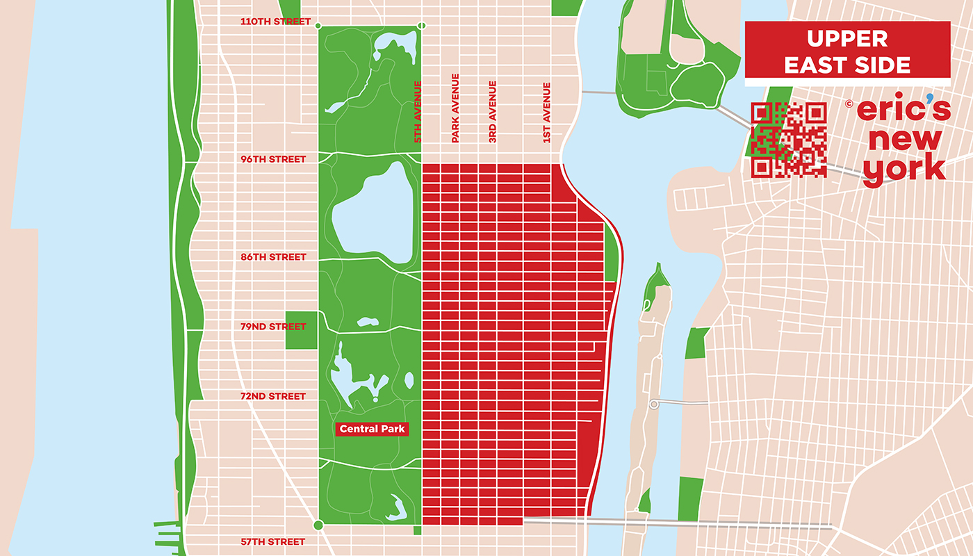 El Upper East Side abarca la zona al este de Central Park. Este barrio neoyorquino es conocido por sus museos, tiendas y su opulencia. Familias “de toda la vida” viven aquí incluyendo ricos banqueros (muchos de origen judío, como Madoff) y abogados de prestigio. Los Rockefeller, los Kennedy y los Roosevelt también vivieron aquí.